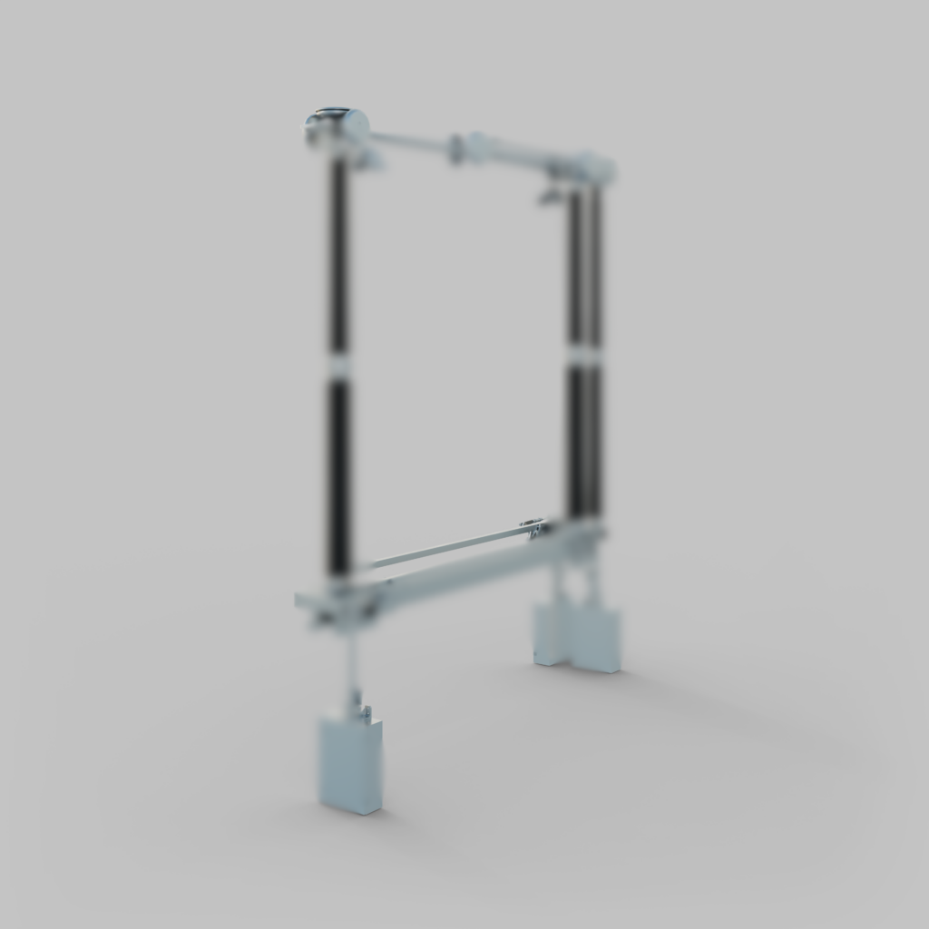 The horizontal break knee type disconnector consists of three poles. Each pole consists of a base, one rotating insulator and two support insulators on which the main blade is mounted.