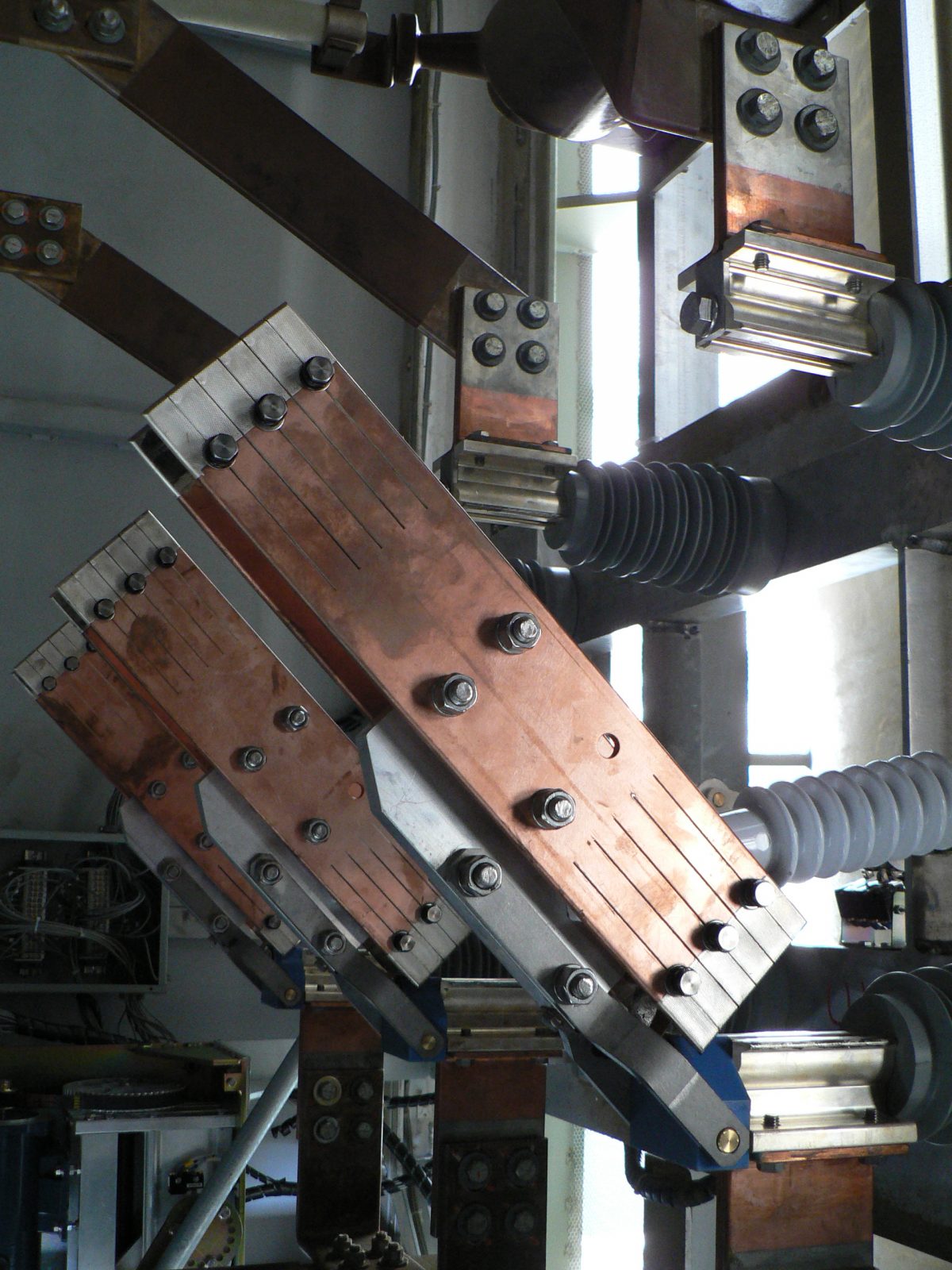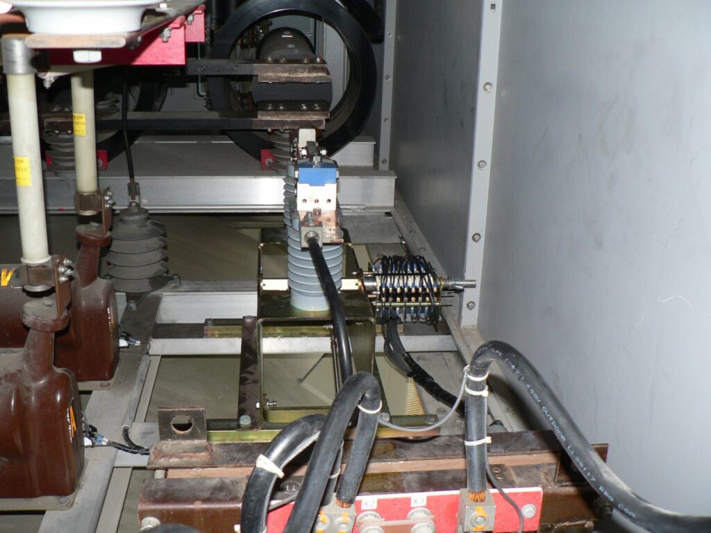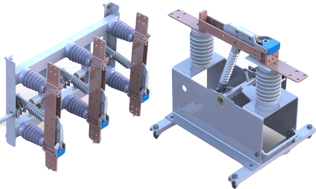 High strength aluminium base frame. Reliable silver plated copper contacts and hard drawn copper blades. Shaft mounted auxiliary contacts. Operated by motor operator via steel linkage. Motor operator is installed next to enclosure door which allows manual operation from outside the GTE through an access trap;