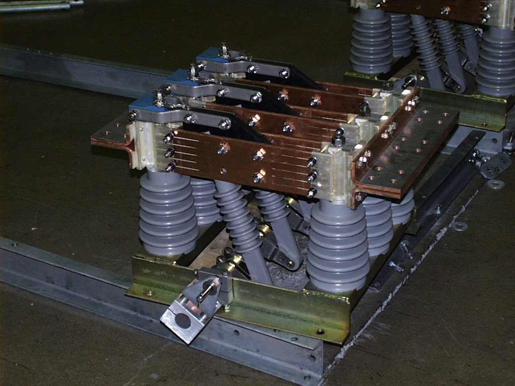 High strength yellow zinc plated steel base frame. High strength epoxy insulators & push rod. Twin blades made of high-conductivity copper. Moving and fixed contacts are made of silver plated hard drawn copper.