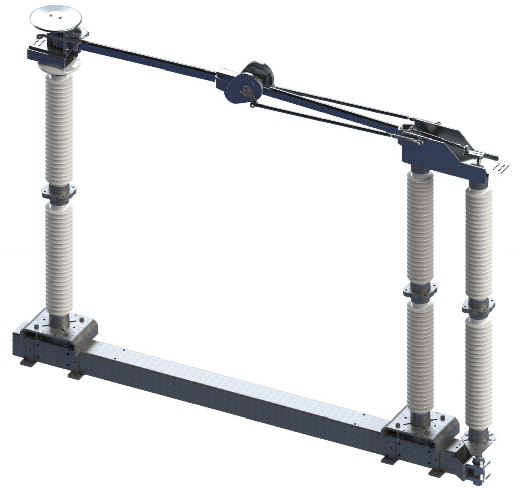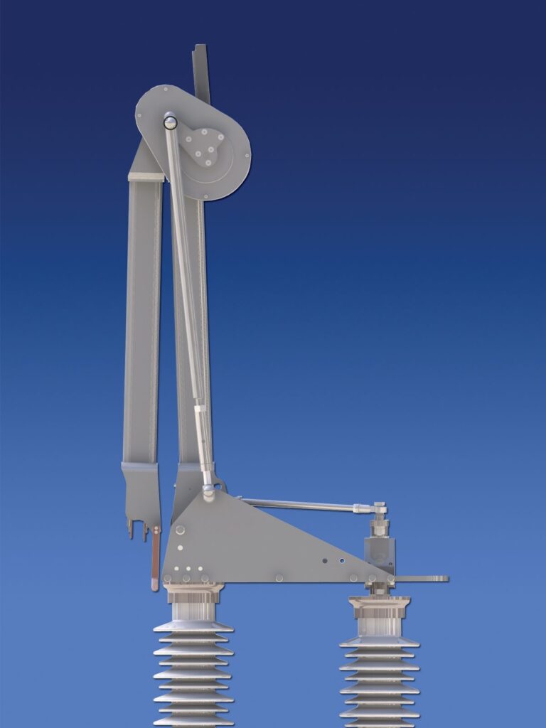The Folding Vertical Break is designed with a simplicity that makes it reliable and easy to operate and maintain. All the mechanical transmission components are accessible from outside the current path. There are no parts hidden inside the conductors. Twin gear-set/pull-rod assemblies provide easy adjustment and stability. All parts are fabricated from extruded aluminum or machined from solid billet materials, such as 304 stainless steel and hard drawn copper.